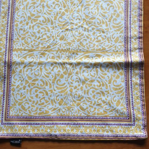 Juhlava, hunajan keltainen himmeästi kiiltäväpintainen pöytäliina