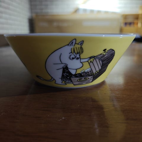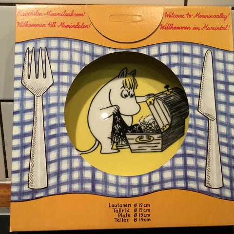 Niiskuneiti posliinikyltti, Arabia. Takana tarran jämiä, en ole yrittänyt poistaa. Ei nimikoitu.