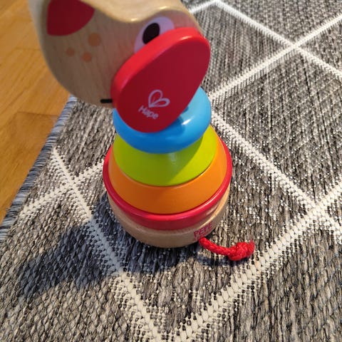 Hyväkuntoinen värikäs tornilelu. Yhden lapsen jälkeen. On hyvin vähän käytön jälkeä.