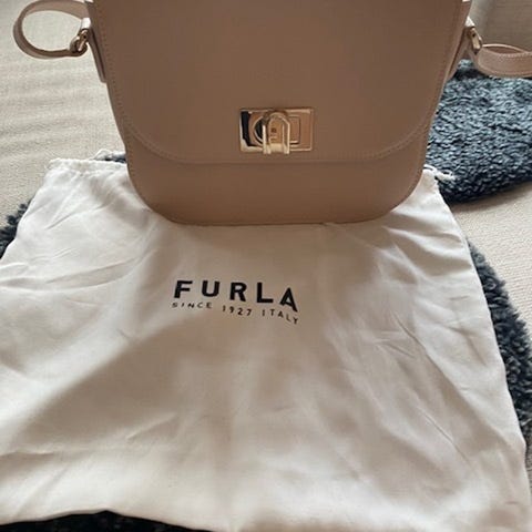 Erinomaisessa kunnossa oleva Furlan olkalaukku, väri tummanpunainen. Kunnossa ei mitään moitittavaa, kuin uusi. Sisällä pieni erillinen tasku. Ei ole se kaikista pienin Furla-laukun koko, vaan hiukan isompi.