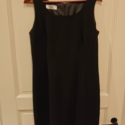 Musta käyttämätön ja pesemätön vuorellinen kotelomekko, koko 38. Vuosia ollut pukupussissa kaapissa, mutta jäänyt pitämättä. Takana vetoketju, materiaali ei jousta. Kissankarvoja tulee väkisinkin mukaan.