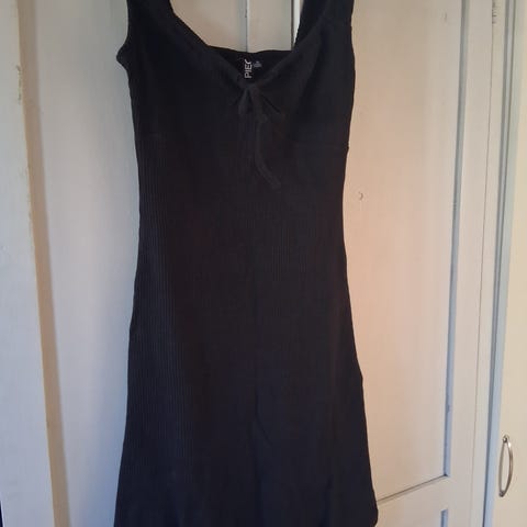 Myyntiin uusi, musta, olkapäät paljastava Pieces-yläosa koossa M. Viskoositrikoota. Sh. 21 e.