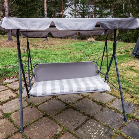 Riippukeinu tarjoaa mukavan lepopaikan ulkotiloihin. Siinä on kestävä teräsrunko ja sininen polyesterikangas, joka kestää erilaisia sääolosuhteita. Tämä riippukeinu sopii täydellisesti puutarhaan tai terassille rentoutumiseen ja auringonottoon.