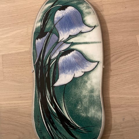 Heljä Liukko-Sundströmin Arabialle suunnittelema Kellohelmat seinälaatta. Laatta on suunniteltu v. 1991. Laatan korkeus on 39 cm ja leveys 17 cm.