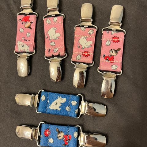 Hyväkuntoiset muutamia kertoja käytetyt Muumi henkselit.