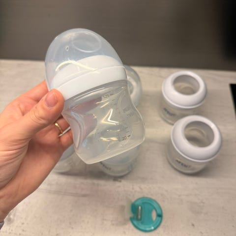 Philips Avent tuttipullot. Kahteen tuttipulloon vaihdettu isompi tuttipää - koko 3.