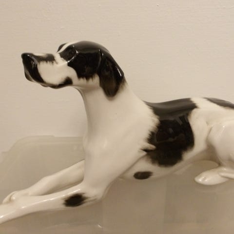 Kettuterrieri patsas figuuri Lomonosov USSR. Pituus noin 16 cm, korkeus noin 17 cm. Nouto / lähetys ostajan lukuun.