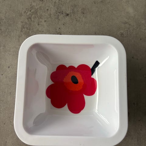 Myydään Marimekko unikko kippo, 15x15 cm, muuten hyvässä kunnossa, mutta reunassa pieni lovi