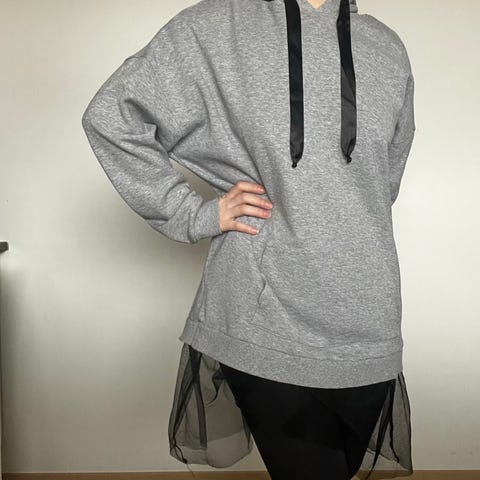 Minea Blomqvist vaatemerkin puuvillaneule hupparimekko, ihana päällä, menee mekkona tai farkkujen /leggareiden kanssa.