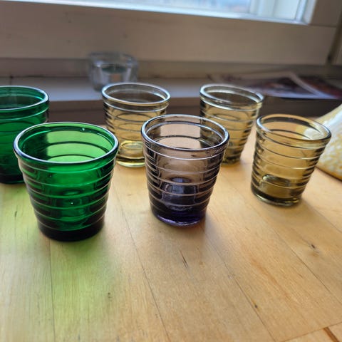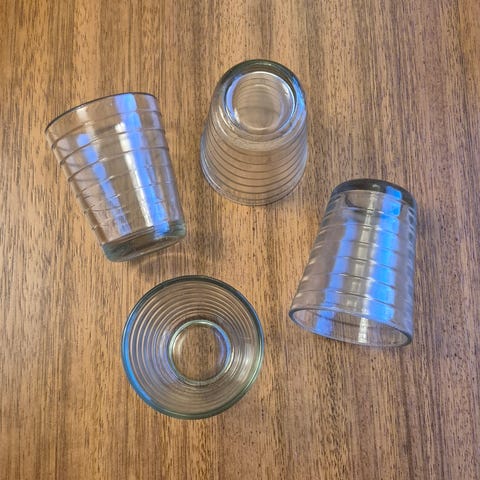 Kirkas ja puhtaat hyväkuntoinen 4 kpl lautanen halkaisija 14 cm Karhulan lasin Bölgeblick Aino Aallolta 1940 luvulta, kuplia lasimassassa. Korkeus 1,8 cm ja halkaisija 14 cm. Myydään yhdessä, hinta yhteensä.
