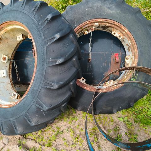 Kohtalaiset 6 kankaiset 16.9 paripyörät ketju kiinnityksellä. Hinnassa alv.