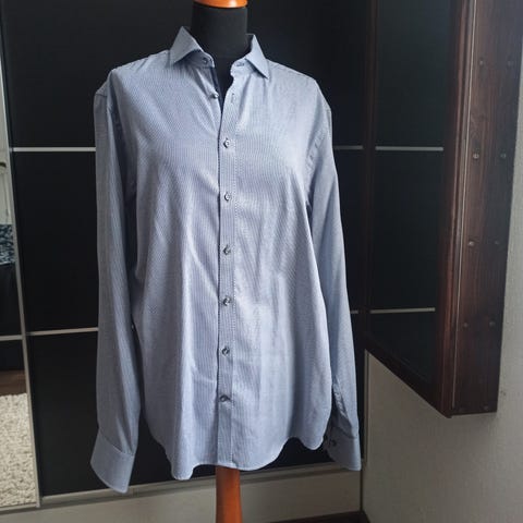 Vähän pidetty musta kauluspaita, jossa violetit napit ja pinkit nappiaukot. Bruun&Stengade easy care, koko 40 ja 15 3/4