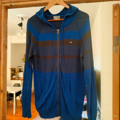 Hyvässä kunnossa oleva J.Lindberg huppari. Hupparin toisesta nauhasta lähtenyt metalliosa. Metallilosa löytyy vielä ja voin laittaa sen hupparin mukana kun tehdään kaupat. Muuten erittäin hyvässä kunnossa.