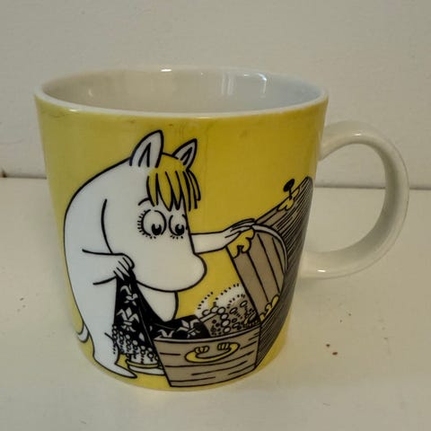 Arabia Muumimuki Niiskuneiti ja runoilija tarralla. Sijainti Pohjois-Siuntio, Nummelan lähellä. Mahdollisesti voidaan tuoda paikkakunnille: Nummela, Kirkkonummi, Espoo, Helsinki. En mielelläni postita.