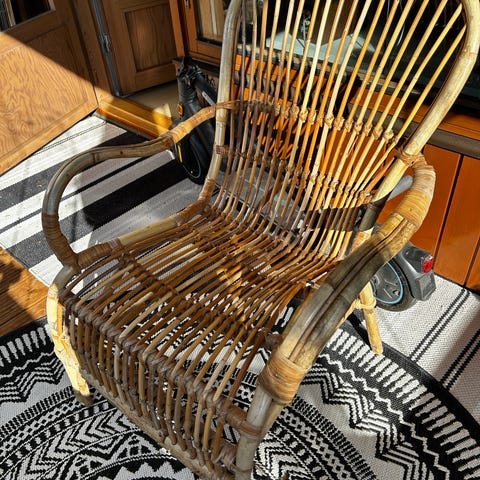Tämä loungetuoli polyrottinkia on ollut kesäisin lasitetulla terassilla ja talvella sisätiloissa. Ei käytön jälkiä.