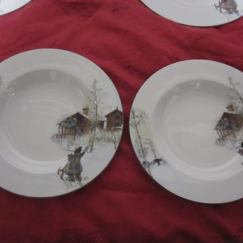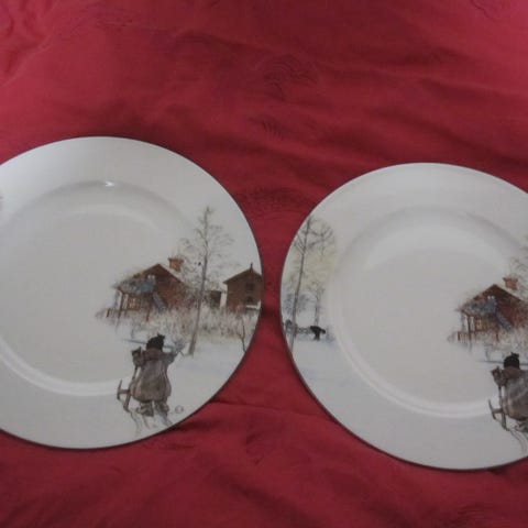Virheettömiä hienoja ruokalautasia. Kelkkaretki sarjan tuotanto apilanlehdeltä loppunut ,joten nyt tilaisuus ostaa vielä tämä setti 6kpl yhteishintaan plus lähetyskulut