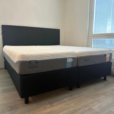 Kyseessä kaikilla herkuilla oleva Cloud Deluxe parisänky 180cm koossa, motorisoituna, runko, runkopatjat, petauspatjat ja sängynpääty ovat kaikki uutena ostettua virallisia Tempurin tuotteita. Sänky uudenveroisessa kunnossa ja pudetty erittäin hyvää huolta.