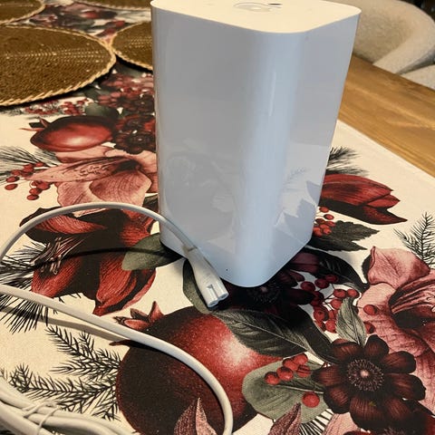 Hyväkuntoinen ja toimiva langaton reititin + 3 TB sisäinen kovalevy automaattiseen Time Machine -varmuuskopiointiin. A1470