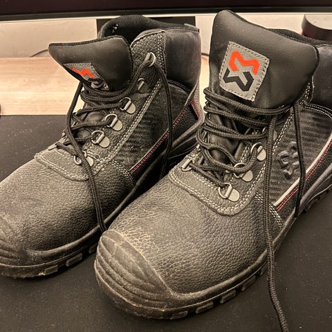 Mustat, kerran käytetyt Wurthin turvakengät.