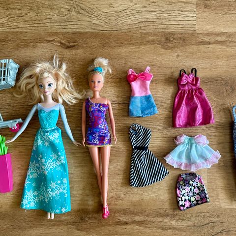 Ihana paketti kaikkea kivaa tyttöjen leikkeihin. Löytyy nykkeja, koira pehmolelu, hevosfiguuri sekä laukkuja. Hyvin pidettyjä leluja, siistejä ja ehjiä.