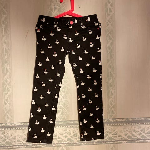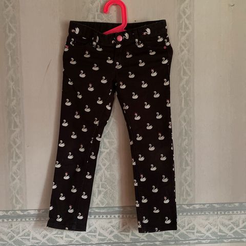 Hm tyttöjen farkut, kerran käytetty, kiva joutsen kuosi, koko 116cm. Hinta 4€