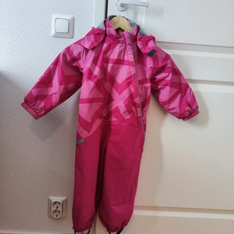 Lassie välikausihaalari, koko 92 cm, nimikoitu. Haalari on vettä hylkivästä, tuulenpitävästä ja hengittävästä materiaalista. Haalari on hyvässä käytetyssä kunnossa, polvissa ja pepun kohdalla on pientä kulumaa (ks. viimeiset kuvat). Jalkalenkit puuttuvat, mutta napit ovat paikoillaan. Eläimetön ja savuton kotitalous.