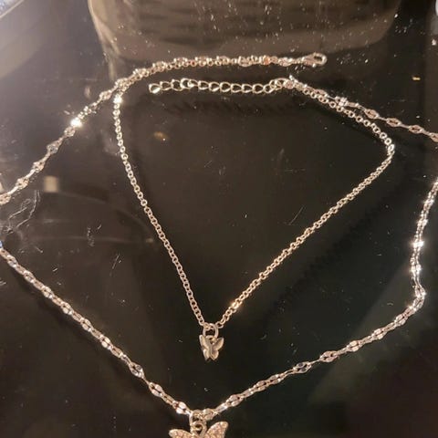 Kullanvärinen kaulakoru perhosriipus ketjun mitta 60 cm + 7,50 cm säätövara