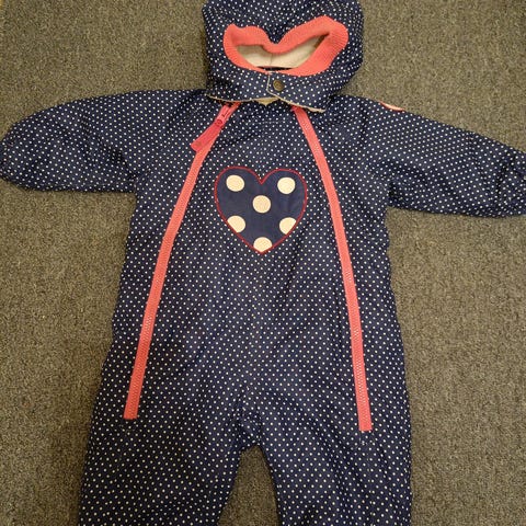 Sydän tytön tytölle tyttöjen polka dot pilkullinen pallokuvioinen sininen tummansininen suloinen 74/80 hiippahuppu pallo kuvioinen talvihaalari toppahaalari toppa lämmin haalari Reima Jonathan haalari