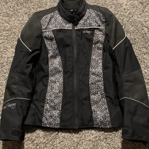Useamman vuoden vanha, mutta hyväkuntoinen ja vähän käytetty moottoripyöräasu.
