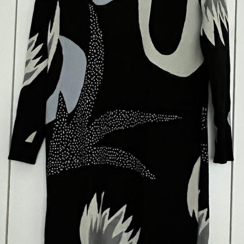 Upea 100% merinovillainen neulemekko Uhanalta. Käytetty muutaman kerran, mutta nyt en enää kunnolla mahdu 😅 kuvissa mekko M/38 kokoisen päällä eli sopii hyvin XS ja S kokoa käyttävälle.mitat löytyvät kuvista. Sama mekko on ollut Sanna Marinin päällä Voguen kannessa!