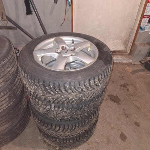Yhdessä Goodyearissa on vähän nastat lähtenyt, mutta renkaat pitävät hyvin.