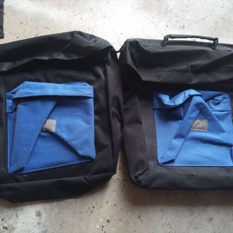 Ruskeanvihreät vanhat pyörälaukut satulan päälle heitettävää mallia eli laukut kiinni toisissaan. Ehjät, mutta ei uusinta uutta. Satulan päälle tulevan osan leveys 15 cm, ei siis sovi sen leveämmälle satulalle. Laukkosan korkeus 37cm, leveys alhaalta 25 cm, ylhäältä 37 cm. Laukun leveys 15 cm. Ehjät ja käyttökelpoiset, kangas vähintään vettä hylkivää.