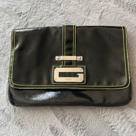 Myydään vielä hyväkuntoinen musta krokotiilinnahka -kuvioinen Guess -merkkinen clutch laukku. Laukussa on pientä kulumaa huomattavissa esim. rannehihnan reunassa (kuva 2/9) sekä rusetin alareunassa (9/9) ja metallisosissa (kuva 8/9). Lisäksi laukun reunasta löysin pienen valkoisen jäljen (kuva 6/9). Laukun sisävuori hiukan tummentunut ja siellä joitain tahroja.