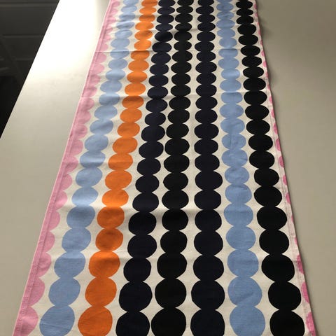 Marimekko Räsymatto verhokappa Sopii erinomaisesti sisustukseen tuomaan eloisuutta ja väriä. Kuosi koostuu kirkkaista ja eloisista väreistä, jotka luovat iloisen ilmeen.