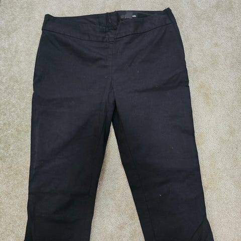 Siistikuntoiset, joustavat H&M caprit, koko 38, lahkeensuissa kiristysnauhat ja takana tasku.
