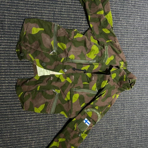 Britannian Armeijan woodland maastotakki, miesten, vihreä. Valmistettu kestävästä puuvillamateriaalista. Takissa on klassinen maastokuviointi, joka soveltuu ulkoiluun, airsoftiin sekä retkeilyyn. Edessä nappi sekä vetoketju kiinnitys ja kaksi rintataskua.