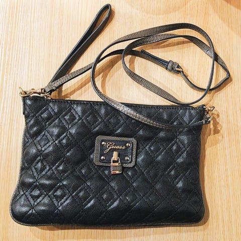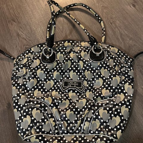 Myydään pientä kulumaa omaava beigenvärinen Guess -merkkinen käsilaukku. Laukkuun on irrotettava olkahihna (käyttämätön). Laukussa on tasku edessä sekä vetoketjullinen sisätasku sekä pienempiä sisätasku.