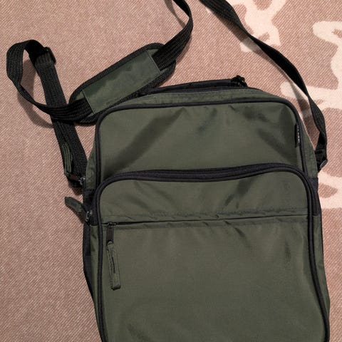 Myydään kuvassa oleva nylon olkalaukku. Väri oliivin vihreä. Voidaan postittaa postimaksuja vastaan.