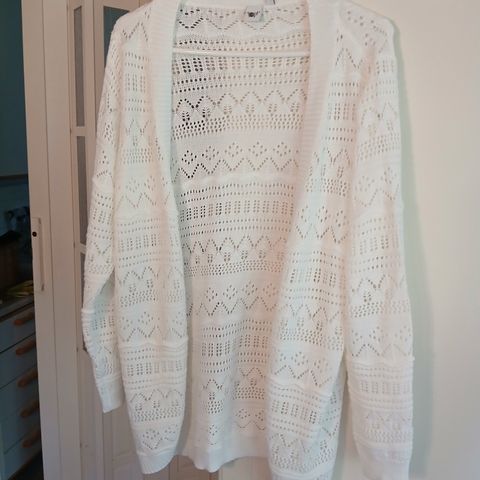 Pitkä upea pitsinen neuletakki, jossa hihansuissa paljettikuvioinnit.