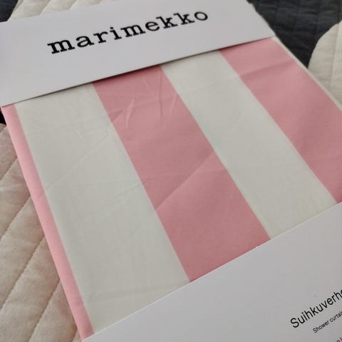 Juuri pesty. Hieno Marimekon suihkuverho. Ei tarvetta uudessa kodissa.