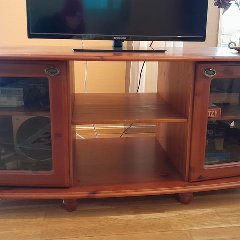 Tv-taso, laatikosto, tms. koivua. Väri valkoinen/tumman ruskea. Leveys 80 cm, syvyys 38 cm, korkeus 44 cm.