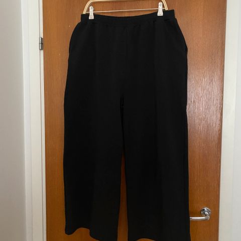 Nanson aivan ihanat tummansiniset Alma leveälahkeiset culottes housut, lahkeen pituus 3/4. Koko L mutta nämä on todella reilua kokoa, käytän itse kokoa 44/46 ja nämä on minulle liian suuret! Ostin uudet M kokoa ja ne pysyy jalassa.