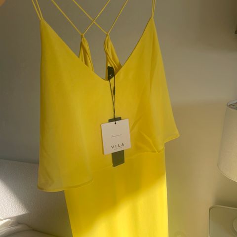 Käyttämätön keltainen maximekko, sopii arkeen ja juhlamekoksi.