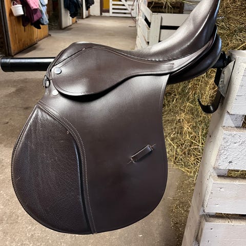 USG ehjä ponisatula (16”). Vaihtokaarellinen, sisällä sininen kaari. Pari vuotta sitten satulasepältä ostettu tarkastettuna, sen jälkeen käytetty noin puolen vuoden ajan ja jäänyt tarpeettomaksi. Istuimen nahassa muutama ryppy, vastinhihnat kunnossa.