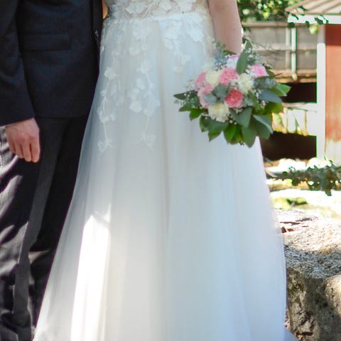 Myydään Atelje Katariinan Sis Idmanin klassinen Noora hääpuku. Koko S. Selässä imarteleva leikkaus ja olkapäissä kauniit helmikirjaillut kukkakuviot. Puku on käynyt pesulassa käytön jälkeen.