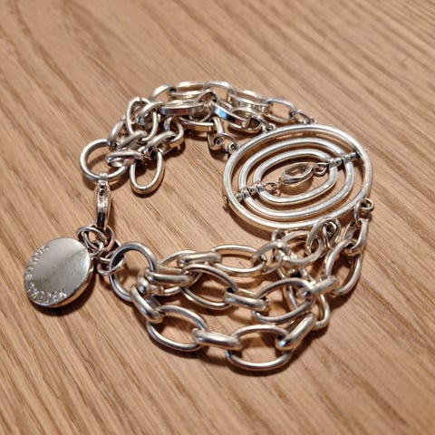Hyväkuntoinen harmaa Snö of Sweden rannekoru, ainoastaan Snön laatassa käytönjälkiä