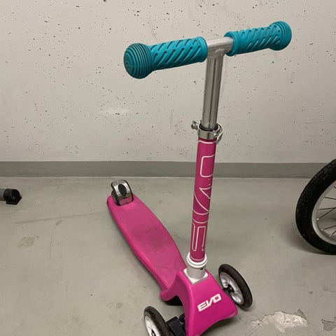 Tämä potkulauta sopii 6–9-vuotiaille lapsille, joiden pituus on 110–150 cm. Siinä on ohjaustangon jarru, joka mahdollistaa nopeuden helpon hallinnan, sekä etujousitus paremman mukavuuden takaamiseksi. Ohjaustangon oikeassa päässä on pieni repeämä. Muuten se on hyväkuntoinen.