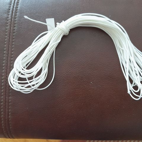 Kuvassa näkyvät paperinarut ja kesken jääneitä töitä, Vasemmalla piti tulla kranssi suurin osa tehty, ohjekin on mukana, muovipussissa tarvikkeita ja keskeneräisiä ruusunnuppuja. lisäksi narut pätkiä ja vähän pidempiä kerällä. Taustalla avattuja narun pätkiä, lisäksi toisessa kuvassa oleva osittain tehty ruusupallo.