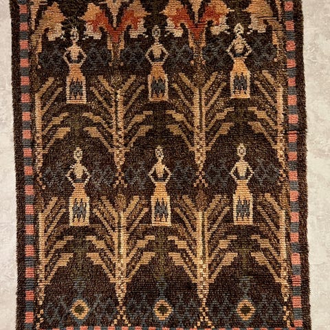 Hyvin säilynyt siisti (ehkä yli 50 vuotta vanha) käsintehty ryijy