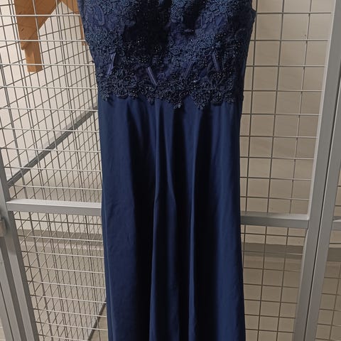 Silkkinen ompelijalla teetätetty iltapuku, jota käytetty kerran wanhoissa ja kerran toisissa juhlissa. Mukaan tyllihame, voi käyttää sen kanssa tai ilman. Koko lienee noin XS kokoa käyttävälle sopiva.
